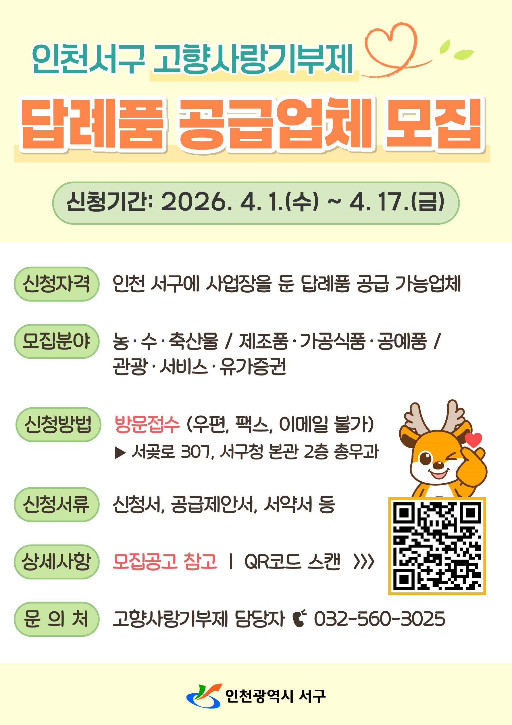 (4/17 금까지 신청) 인천 서구 고향사랑기부제 답례품 공금업체 모집
